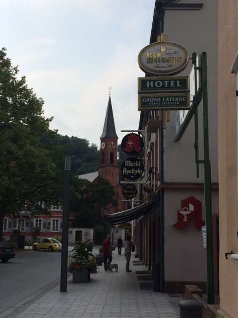 -Today I did venture out of Stuttgart again with a trip up to Landstuhl. There really isn’t too much there, except the Landstuhl Regional Medical Center, with Ramstein Air Base also in the area, so it has certain significance to recent US military history–and more to the point, a character in my new novel (Jim Allen from my story “Welcome Home” is a big character in the book) is sent to the medical center for a brief time. So it was kind of research for the novel, kind of just being curious to see what a US military town in Germany is like. I wasn’t sure if I should still go up there. There are a million other places to visit here that offer more in the way of culture and sights. The trip itself was longish, about three hours each way by train, although a lot of that was through the scenic Rhineland area, so not much to complain about there. So I went.